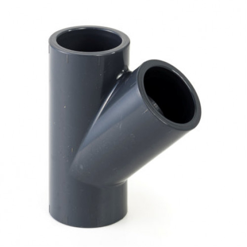 Met dit T-stuk kan een aftakking gemaakt worden in een waterleidingsysteem in een hoek van 45 graden.