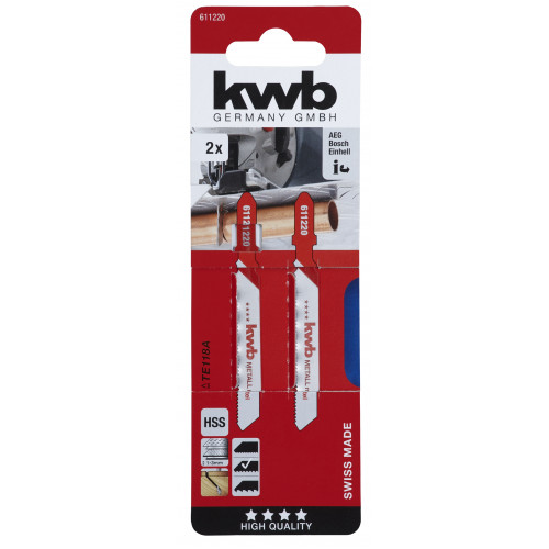 kwb Decoupeerzaagbladen, metaalbewerking, HSS -- Decoupeerzaagbladen, HSS-staal, gehard, tanden golvend en gefreesd, voor de bewerking van dun plaatstaal.