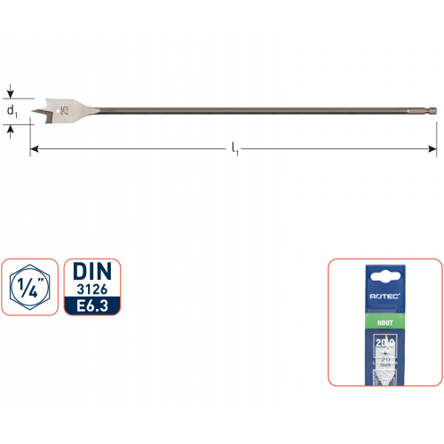SPEEDBOOR LANG 1/4'' BIT-AANSLUITING � 25 X 400 MM