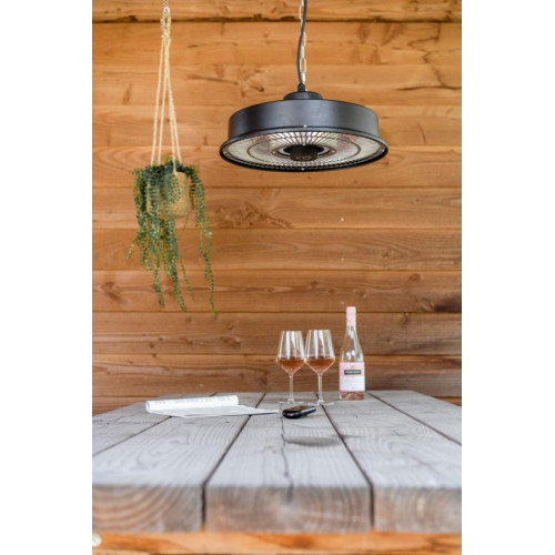 Met de bijgeleverde afstandsbediening bedien je de warmte én de kleurenlamp, en het is zelfs mogelijk om deze heater op een timer te zetten.