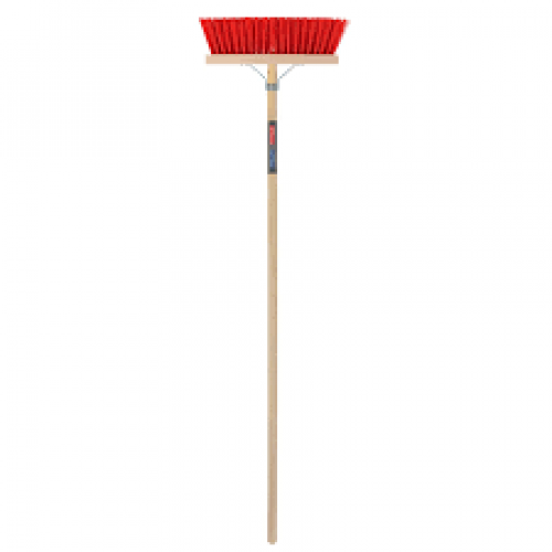 Deze bezem met kunststof haren, is geschikt voor buiten. De bezem is ook ideaal voor vochtige ondergronden, het nylon zorgt ervoor dat bij vocht de haren niet aan elkaar gaan klitten. Hij heeft een breedte van 35cm. De bezem is voorzien van een steel van 140cm. Ter ondersteuning is de steel met een verstevigingsbeugel aan de bezem gemonteerd. Zet na gebruik de bezem niet met de haren op de grond. U kunt hem beter ophangen of met de steel op de grond zetten. Als u de bezem wel met de haren op de grond zet, heeft u kans dat de haren krom gaan staan en het gebruik niet meer optimaal is.