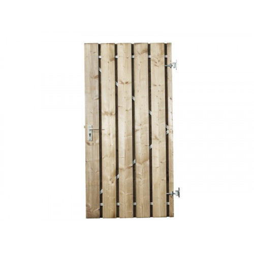De Hamburg is een rechte deur met een frame van gegalvaniseerd staal. Hij is vervaardigd uit naaldhout, dat is ge�mpregneerd met Celfix. Deze behandeling vergroot de levensduur ongeveer vijf keer en maakt naaldhout een zeer milieubewust alternatief van tropisch hardhout. De deur wordt geleverd inclusief hang- en sluitwerk en is zowel links- als rechtsdraaiend. Hij is RVS geschroefd en bestaat uit 9 verticale planken van 145x16mm.
