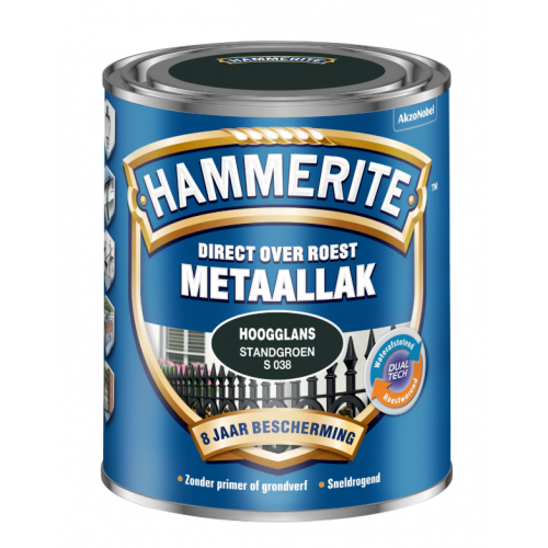 Hammerite Metaallak Hoogglans is een decoratieve roestwerende metaallak voor alle soorten ferro metalen, zowel nieuw als roestig en beschadigd. Deze metaallak kan direct over roest aangebracht worden, er is dus geen grondverf meer nodig. Dit product is kras- en stootvast, stopt het roestproces en geeft 8 jaar bescherming tegen roest. Hammerite Metaallak Hoogglans is waterafstotend en weerbestendig waardoor het goed gebruikt kan worden voor de bescherming van allerlei metalen objecten in en om het huis.