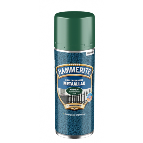 Hammerite Metaallak Hamerslag is een decoratieve roestwerende metaallak voor alle soorten ferro metalen, zowel nieuw als roestig en beschadigd. Deze metaallak kan direct over roest aangebracht worden, er is dus geen grondverf meer nodig. Dit product is kras- en stootvast, stopt het roestproces en geeft 8 jaar bescherming tegen roest. Hammerite Metaallak Hamerslag is waterafstotend en weerbestendig waardoor het goed gebruikt kan worden voor de bescherming van allerlei metalen objecten in en om het huis. Dit product heeft een bijzonder hamerslageffect waarmee oneffenheden gemakkelijk worden gemaskeerd en is verkrijgbaar in een handige spuitbus waardoor de lak makkelijk aan te brengen is.